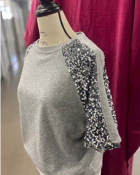 Oversized Wool Flannel Jacket with Rhinestones- Grey